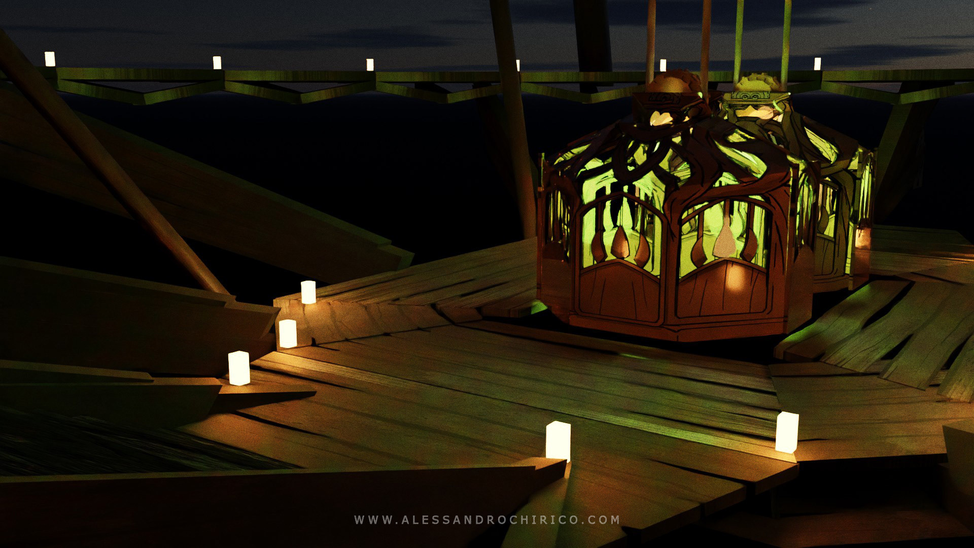 Hope you enjoy some of the behind the scene images I'm posting, rather than polished illustrations of the sets. The gif image shows the first iteration of the set done straight in Blender.